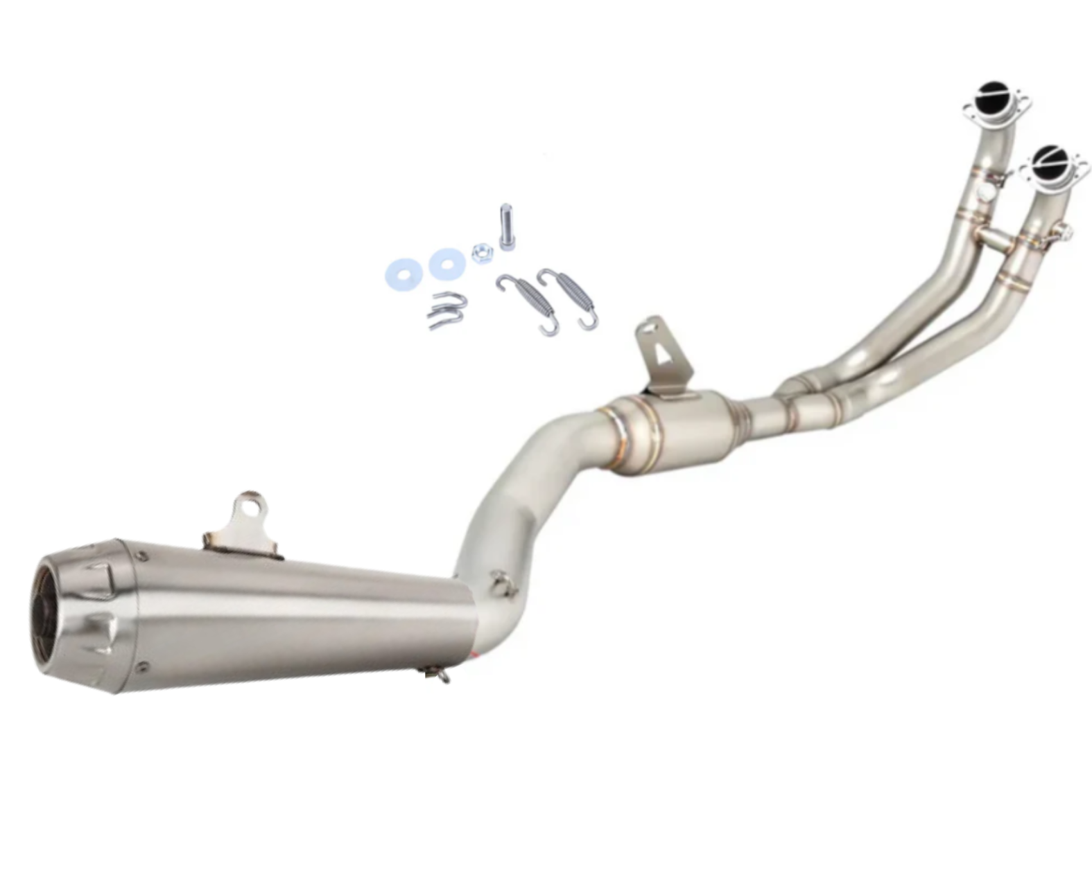 Exhaust made of high-quality stainless steel, improving the performance and sound of the motorcycle.