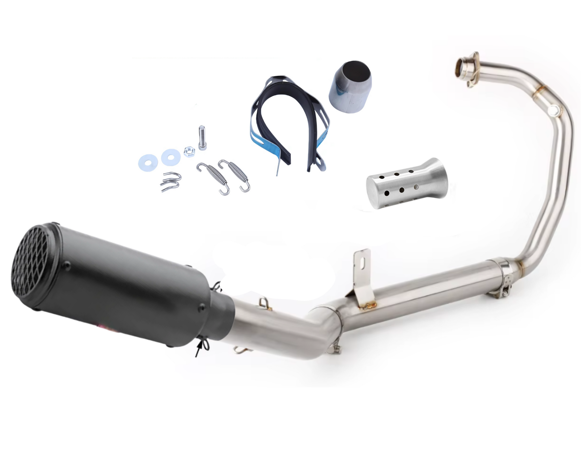 Exhaust made of high-quality stainless steel, improving the performance and sound of the motorcycle.
