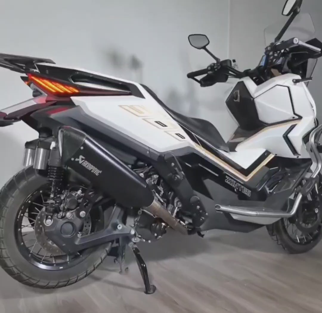 Handmade exhaust made in High quality stainless steel , designed to give your Zontes a unique sporty sound and a real improvement in the motorcycle performance .