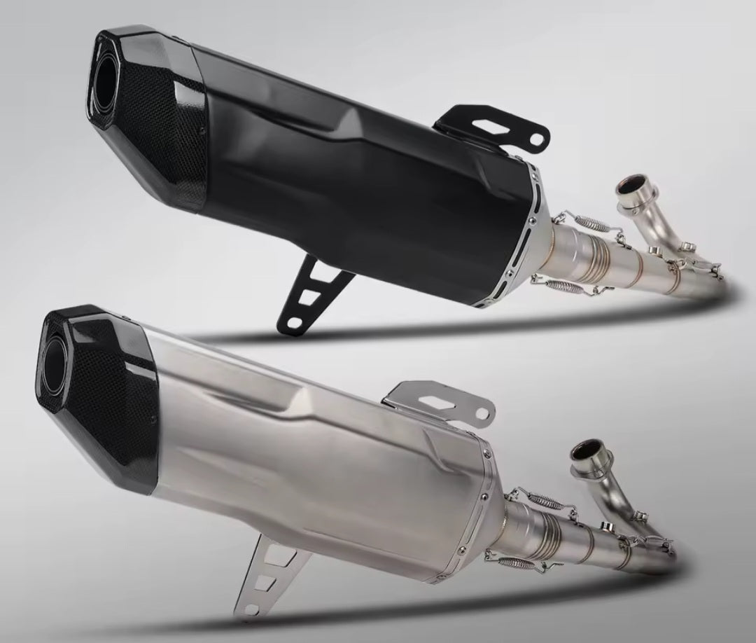 Handmade exhaust made in High quality stainless steel , designed to give your Zontes a unique sporty sound and a real improvement in the motorcycle performance .