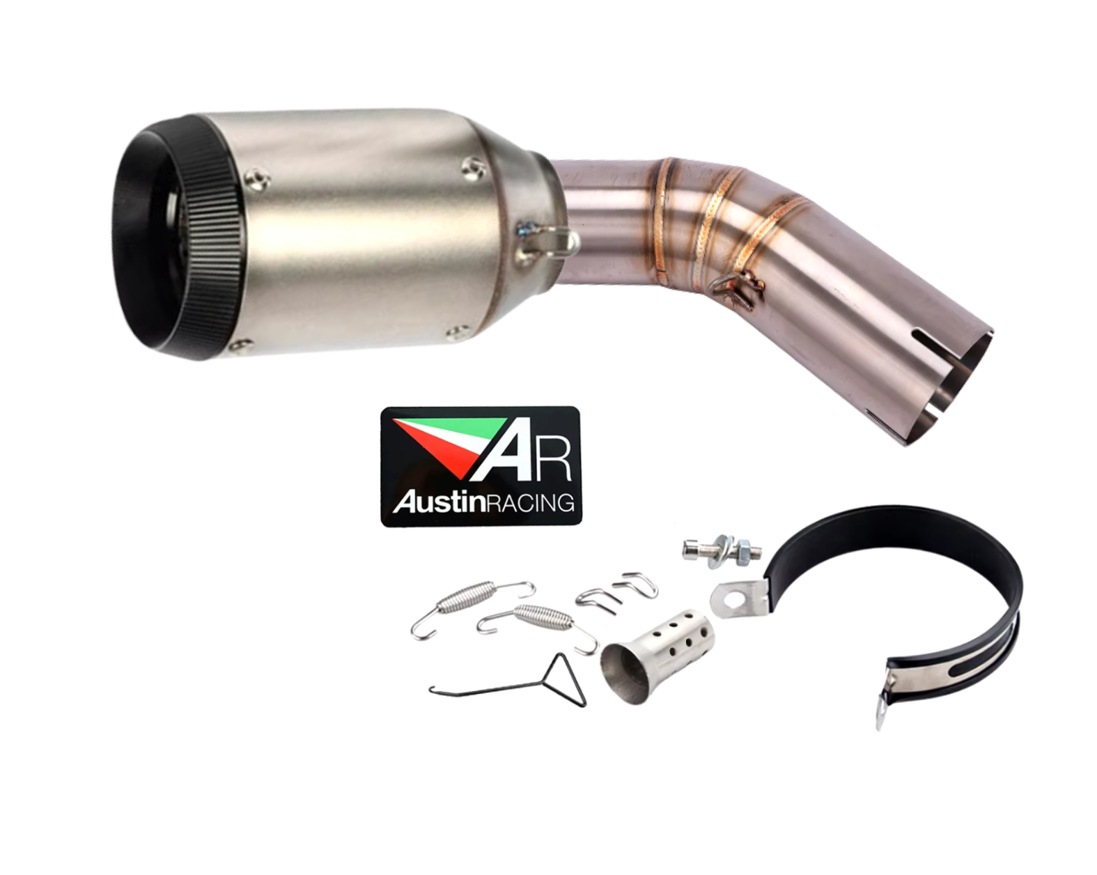 Exhaust made of high quality aluminum and stainless steel, improves the performance and sound of the motorcycle.