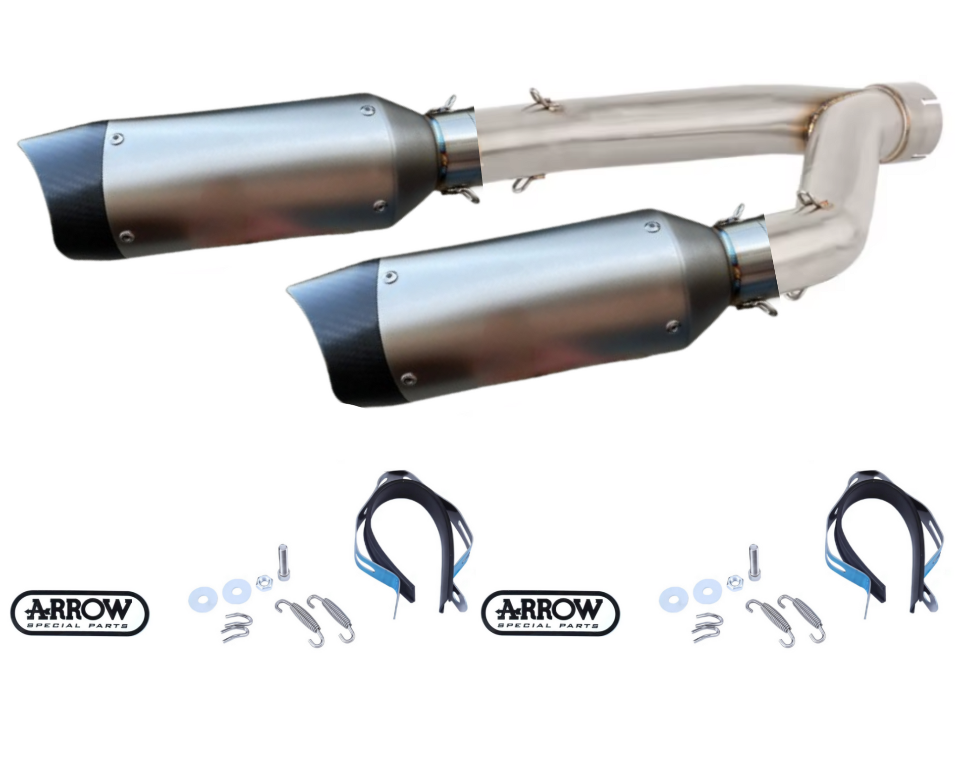 The Final Section includes: 2 Silencers with removable DB-Killer, Semi-collectors specific to the motorcycle and Complete mounting kit.