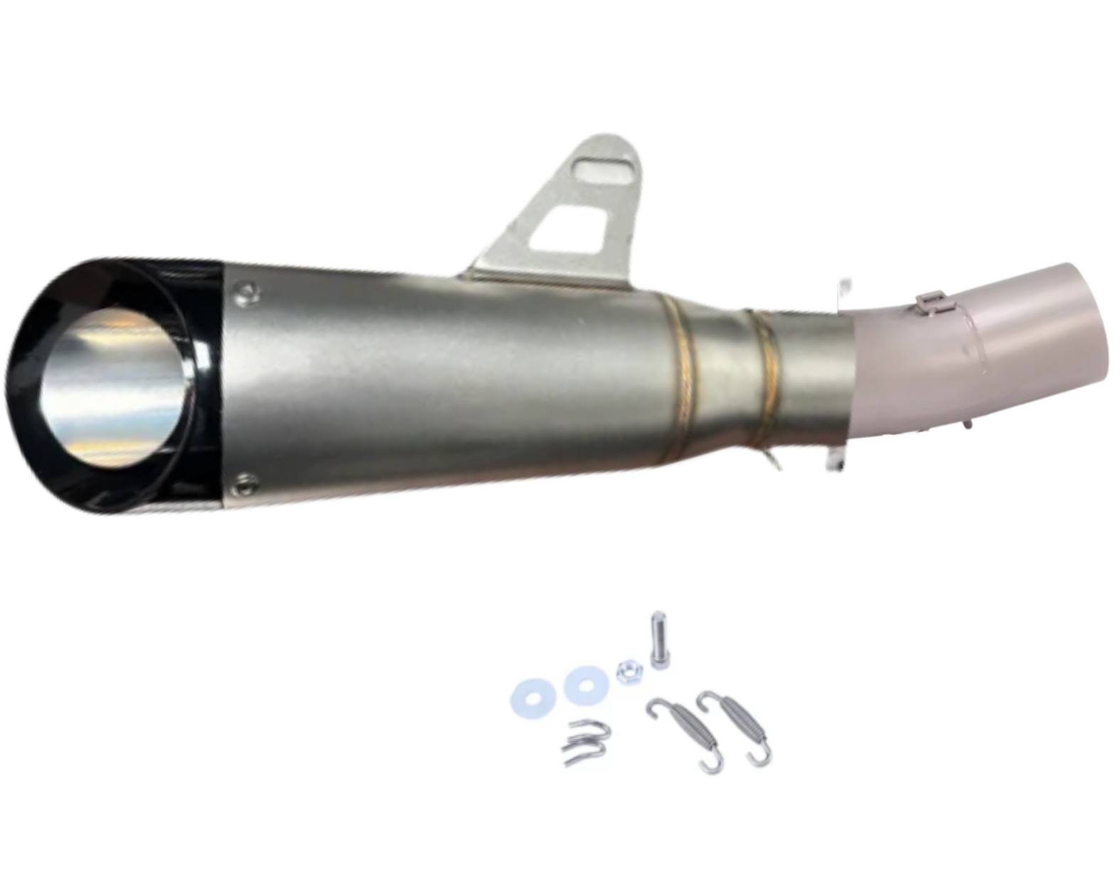 Exhaust made of high-quality stainless steel, improving the performance and sound of the motorcycle.