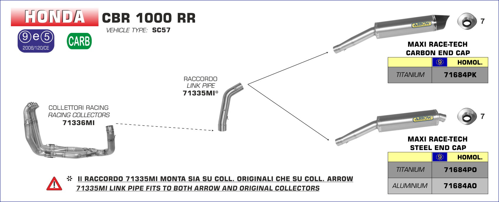 - Honda CBR 1000 RR 2006-2007 : Estos colectores Arrow 71336MI nunca estarán homologados para emisiones de CO2