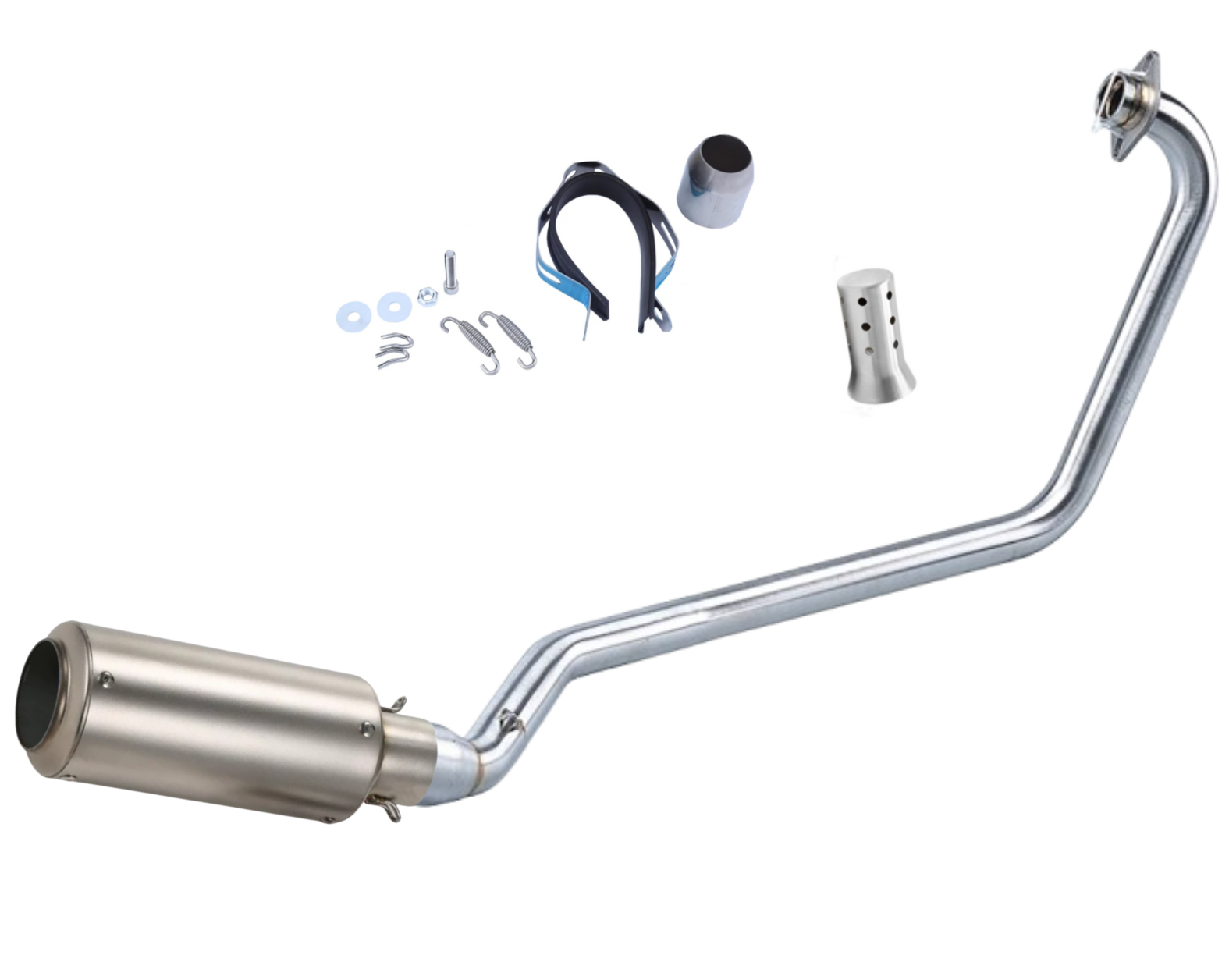 La Línea Completa incluye: Silenciador con Db-Killer extraíble, Colector específico para la moto desde el motor y Kit de montaje completo.