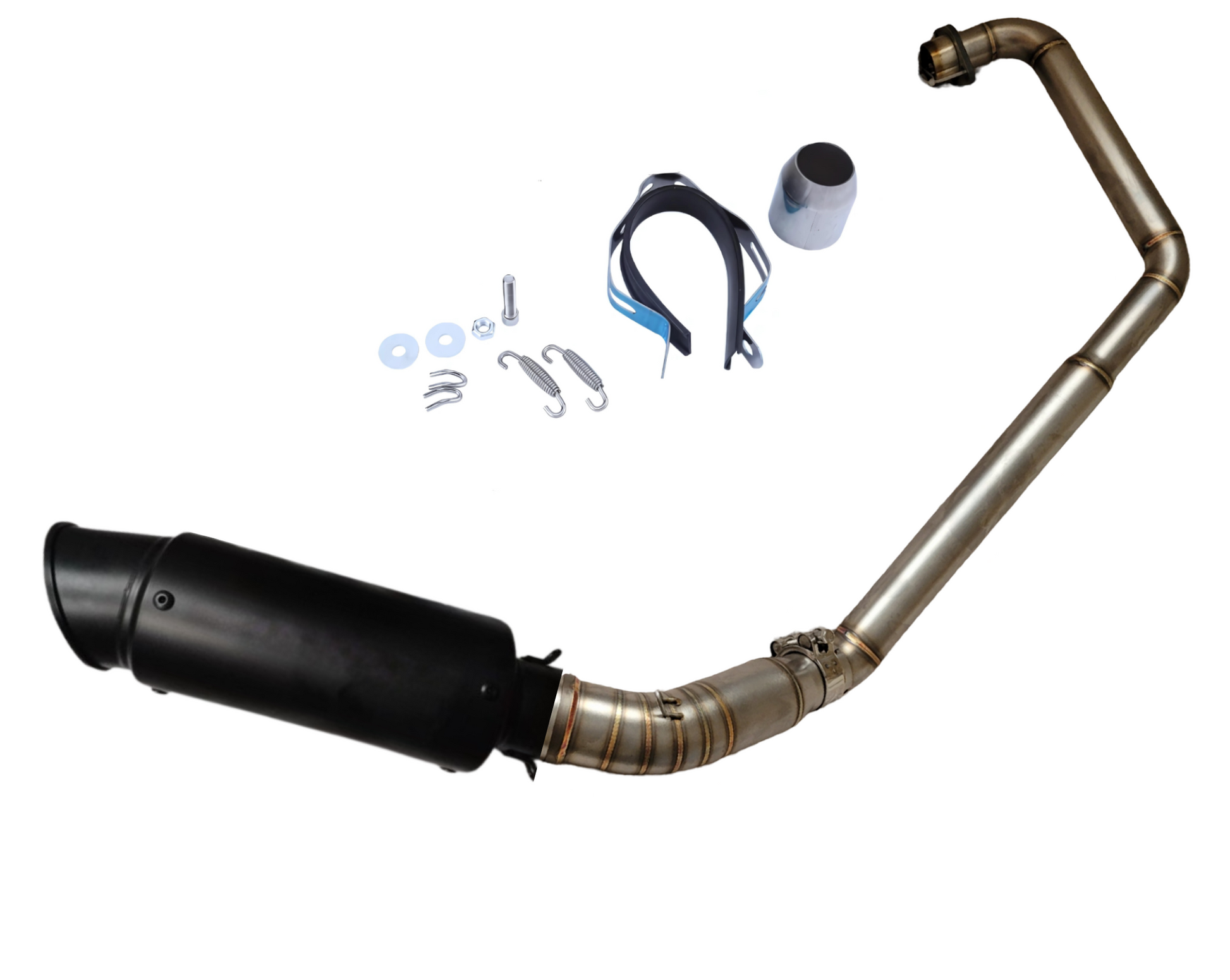 La Línea Completa incluye: Silenciador, Colector específico para la moto desde el motor y Kit de montaje completo.