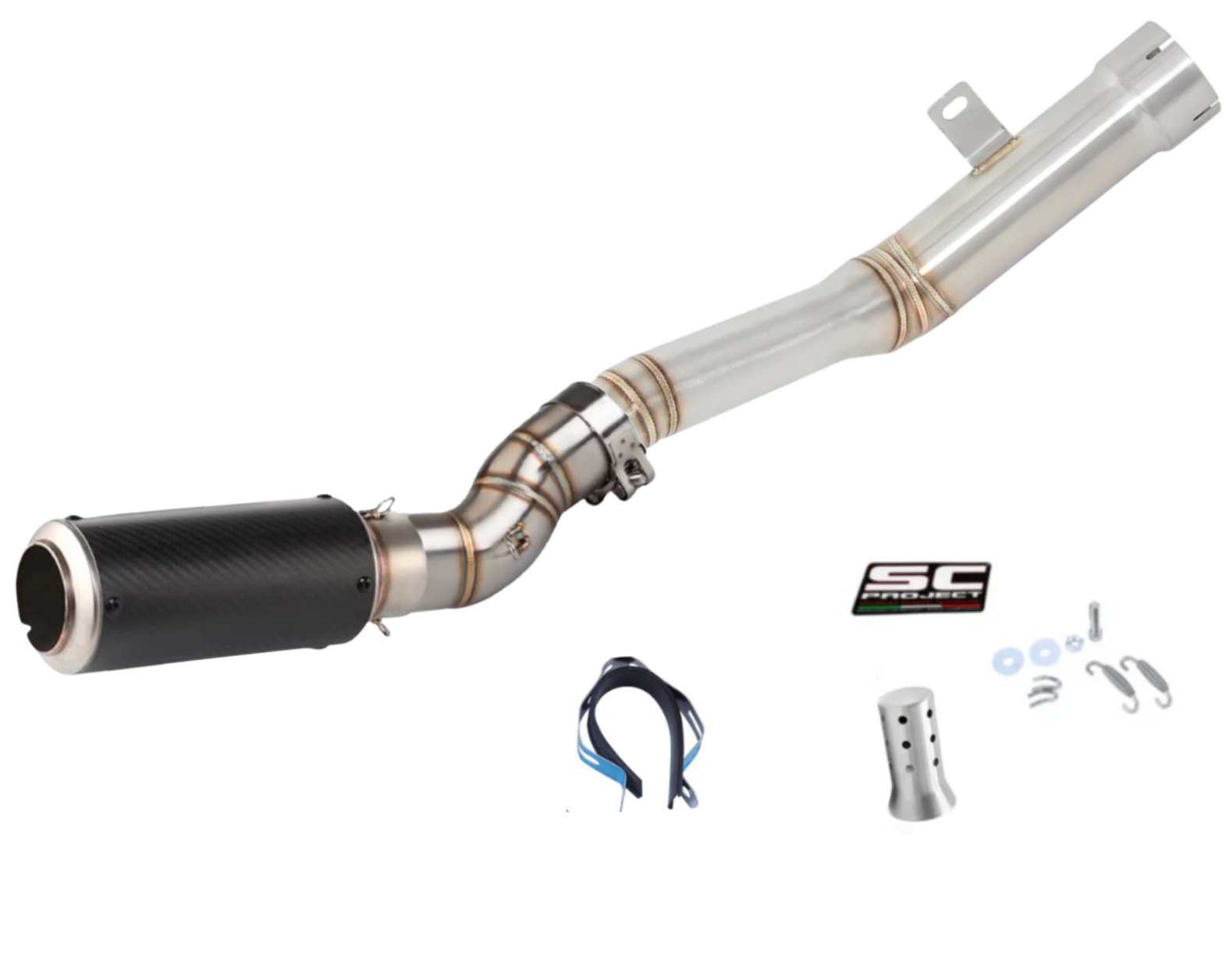 La Línea incluye: Silenciador con db killer extraible, Semicolector específico para la moto, Supresor de Catalizador y Kit de montaje completo.