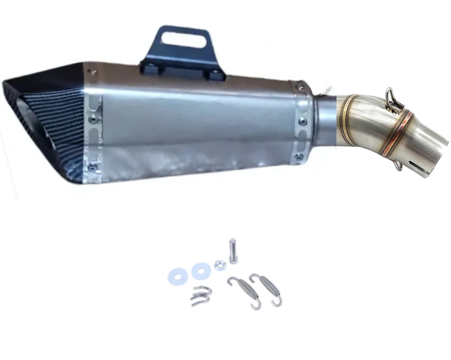 El Tramo Final incluye: Silenciador con db killer extraible, Semicolector específico para la moto y Kit de montaje completo.