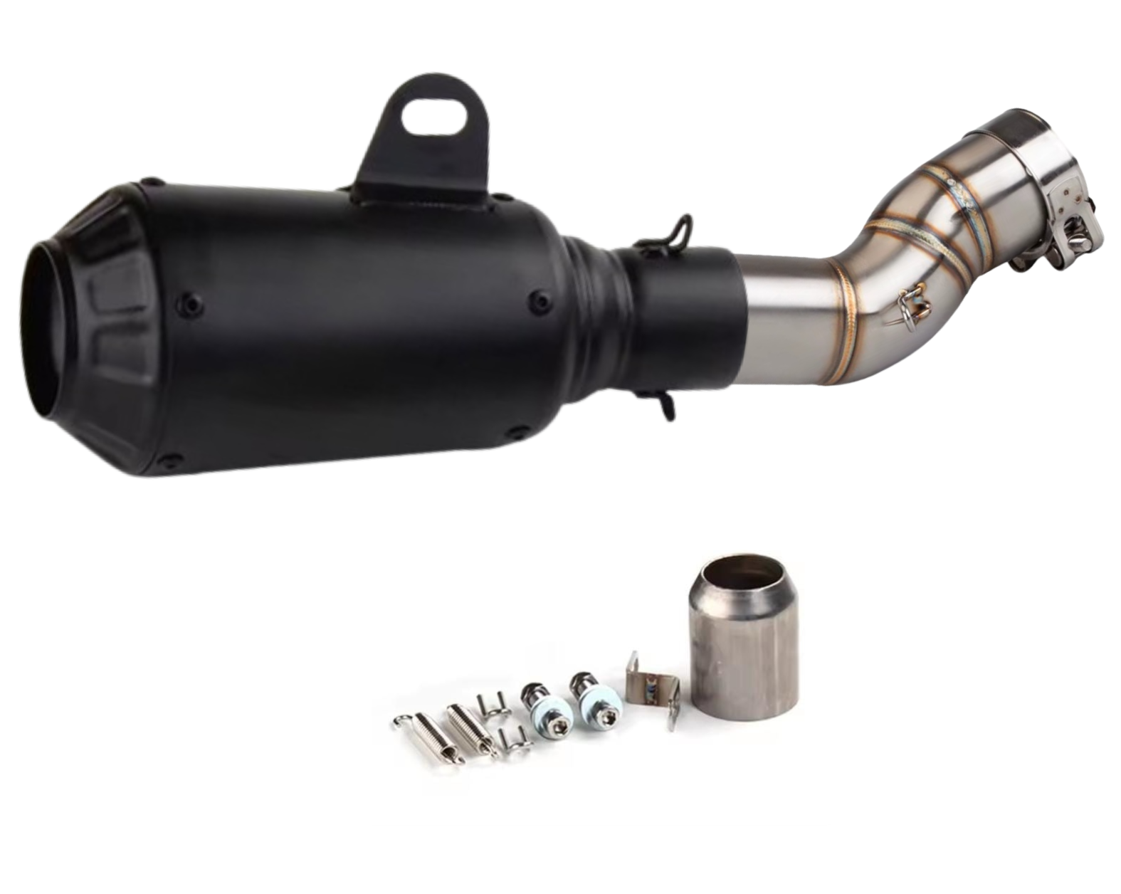 El Tramo Final incluye: Silenciador con db killer extraible, Semicolector específico para la moto y Kit de montaje completo.