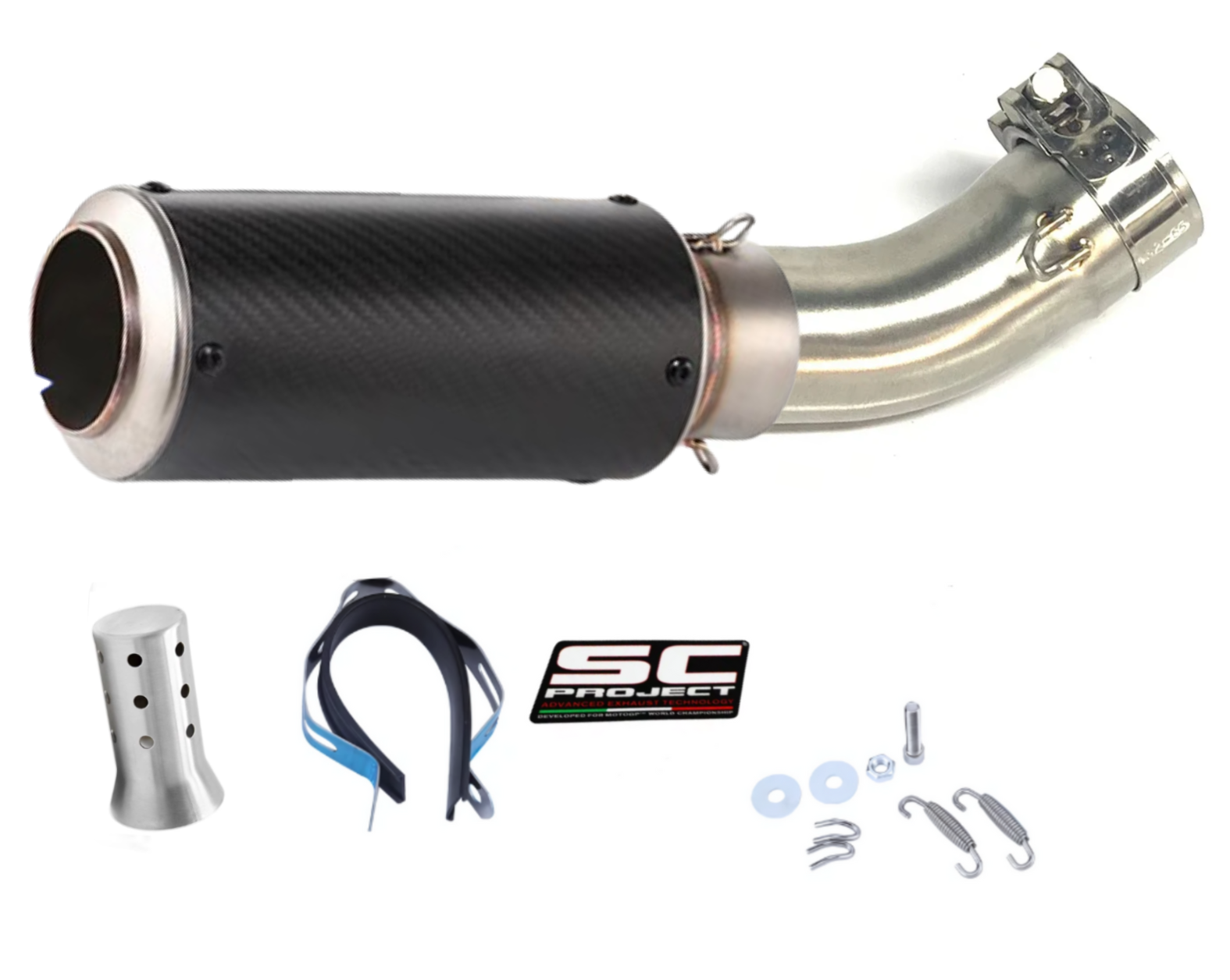 El Tramo Final incluye: Silenciador con db killer extraible, Semicolector específico para la moto y Kit de montaje completo.