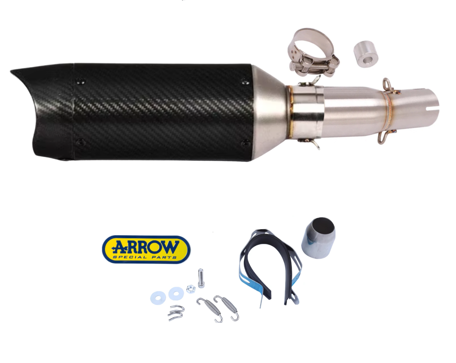 El Tramo Final incluye: Silenciador con db-killer extraíble, Semicolector específico para la moto y Kit de montaje completo.