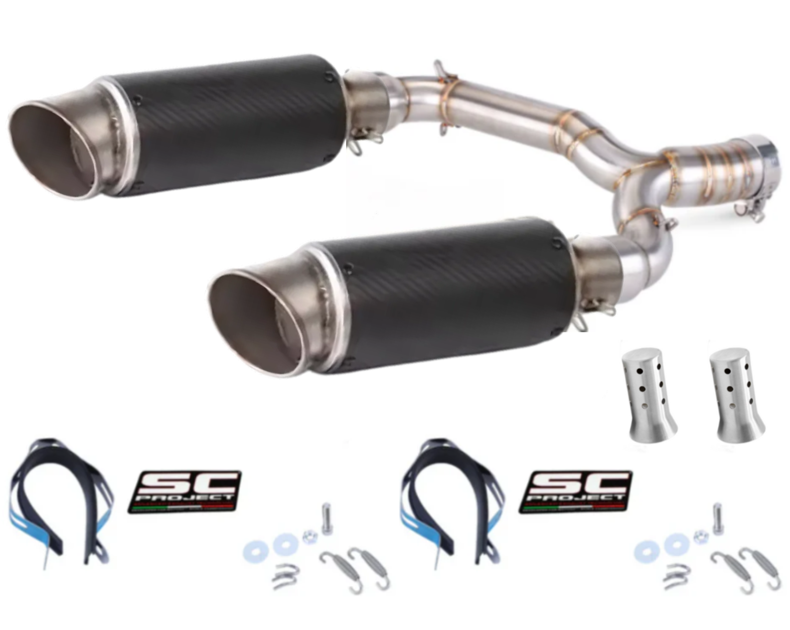 El Tramo Final incluye: 2 Silenciadores con Db-Killer extraíble, Semicolectores específicos para la moto y Kit de montaje completo.