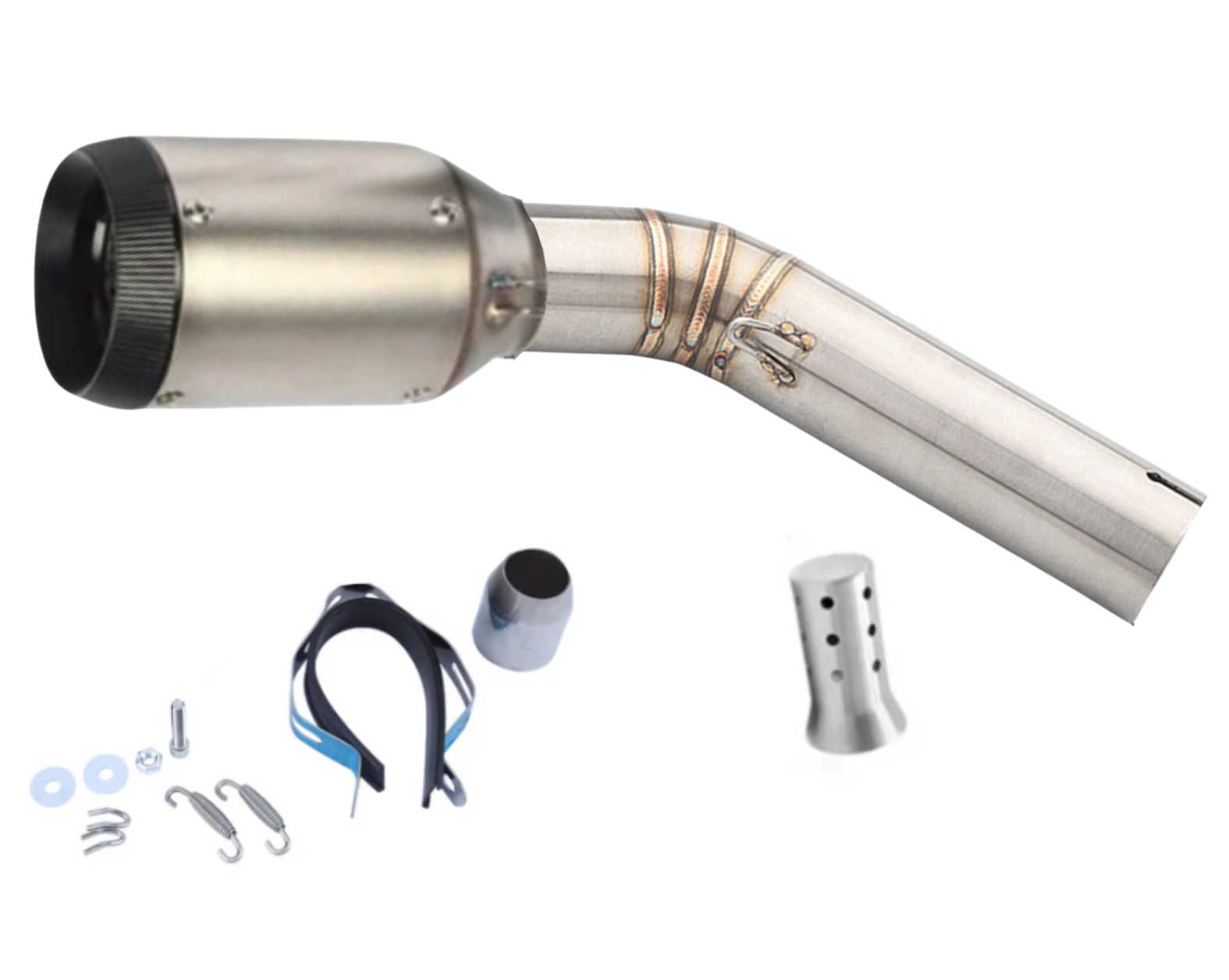 El Tramo Final incluye: Silenciador con db killer extraíble, Semicolector específico para la moto y Kit de montaje completo.