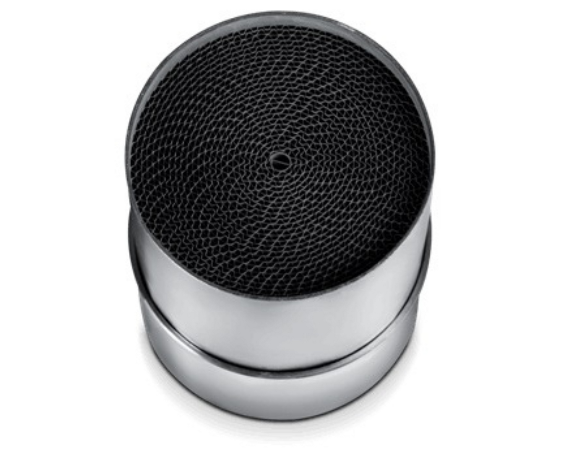 - Ele foi projetado como uma estrutura metálica em formato de favo de mel e incorpora uma série de metais preciosos (principalmente paládio, ródio e platina) em sua superfície. A função desses metais preciosos é transformar gases poluentes, como monóxido de carbono e hidrocarbonetos, em dióxido de carbono (não tóxico) e vapor de água.